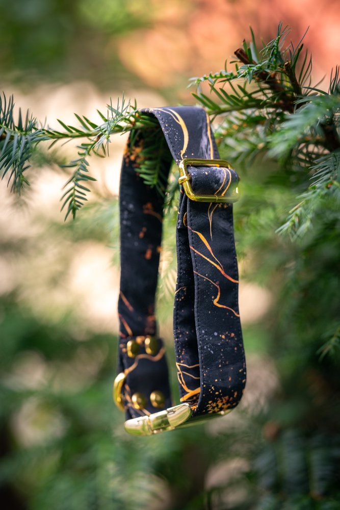 Černý základ protkaný jemnými zlatými žilkami – výrazný, ale nadčasový motiv, který dodá každé procházce kapku luxusu. Více